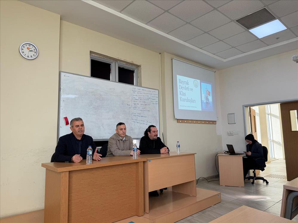 Deniz Hukuku Ana Bilim Dalınca düzenlenen “Deniz Ticareti ve Sigorta Hukuku Semineri” Öğr. Gör. Bayram Deniz ve Dr.