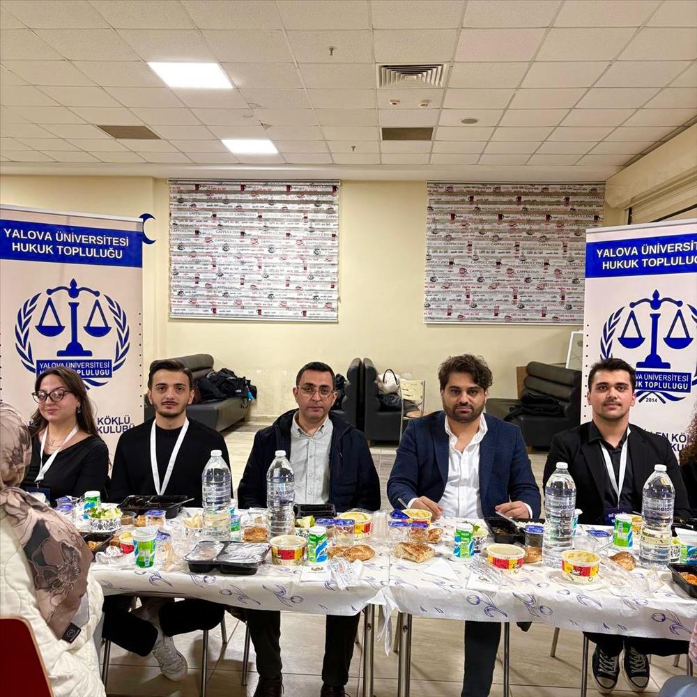 Yalova Hukuk Topluluğu organizasyonuyla fakültemiz kulüplerine yönelik olarak düzenlenen “birlik-beraberlik” iftarına Dekan Yardımcımız Dr. Öğr. Üyesi Sn. Kenan Evren Yaşar ve Hukuk Topluluğu danışmanı Arş. Gör. Sn. Ufuk Demirkan Hocalarımızın yanı sıra aktif bir şekilde faaliyet yürüten 6 fakülte kulübümüz de katılım sağladı.